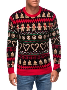 Pánský červený vánoční svetr s norskými vzory - červený V1 EM-SWOS-0101