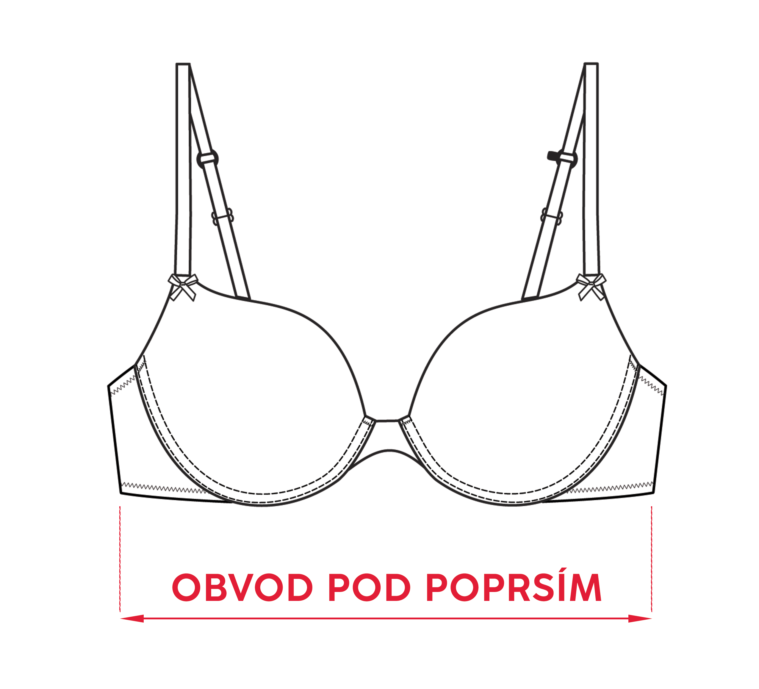 Obvod pod prsy měřte vodorovně po celém obvodu pod prsy ve vzpřímené poloze.