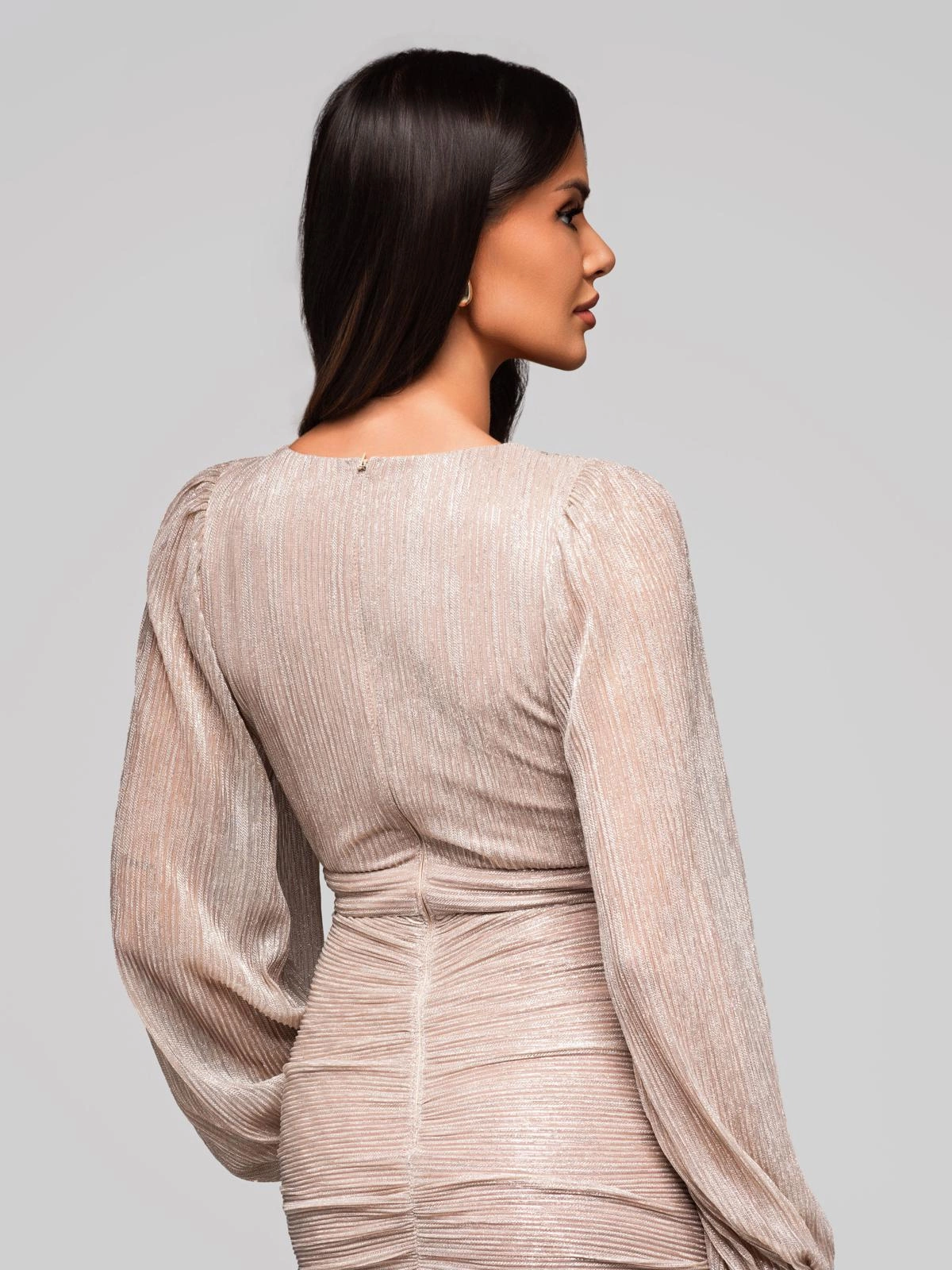 Dámské mini šaty s dlouhými rukávy a výstřihem do V RUBI DLR195 - stříbrné